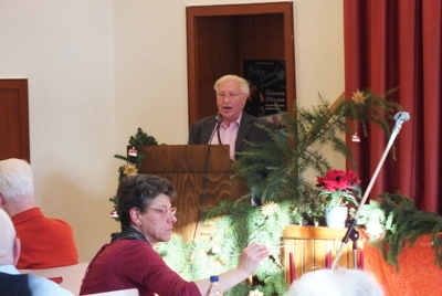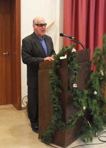Nach dem gemeinsam gesungenen Weihnachtslied „Wir sagen euch an den lieben Advent“ las Hans Peter Christ das in Braille Schrift übersetzte Gedicht vom „Knecht Rupprecht“ von Theodor Storm vor, dessen Anfangszeile ja Jedermann kennt: „Von drauß vom Walde komm ich her …“.