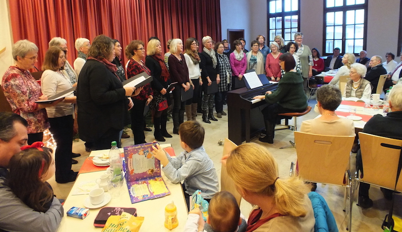 Nach dem gemütlichen Kaffee trinken wurden die Gäste auf das Beste vom Frauenchor Plank-Ton unterhalten. Die rund 30 Sängerinnen mit ihrer Dirigentin Claudia Böhmer zogen mit ihrem mitreißenden Gesang alle in ihren Bann. Mit Liedern wie „Amazing Grace“, einem alten Kirchenlied, und „Where you There“ beeindruckte der Frauenchor Plank-Ton die Gäste. Zum Abschluss des musikalischen Teils sangen alle gemeinsam das Weihnachtslied „Engel auf den Feldern singen“ mit dem bekannten Refrain „Gloria in excelsis deo“.