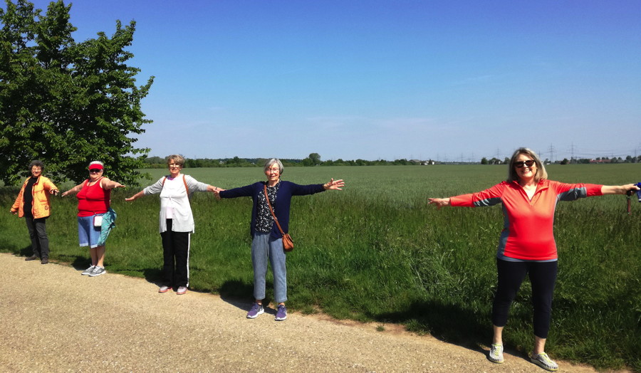 Mit dem erforderlichen Abstand, aber trotzdem gemeinsam, hatten die Teilnehmerinnen viel Spaß und Freude an dem Wiedersehen, das durch das schöne Wetter noch begünstigt wurde.